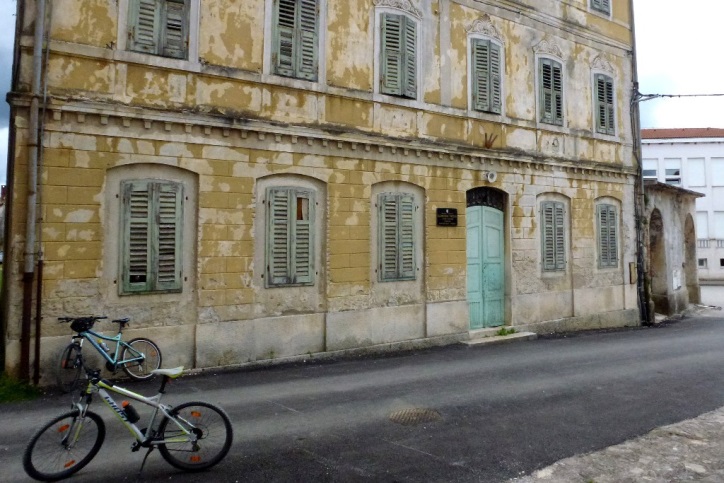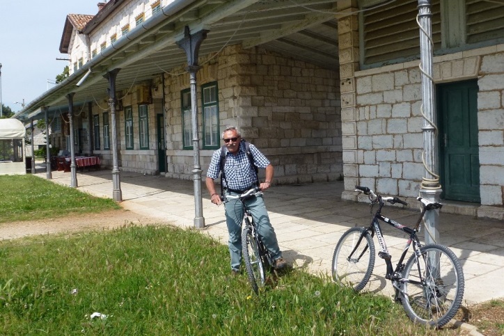 Ort Rovinj: Kurze Velofahrt entlang der Küste, teils wieder auf der „Parenzana“. Schön renoviertes, altes Bahnhofgebäude in Rovinj.