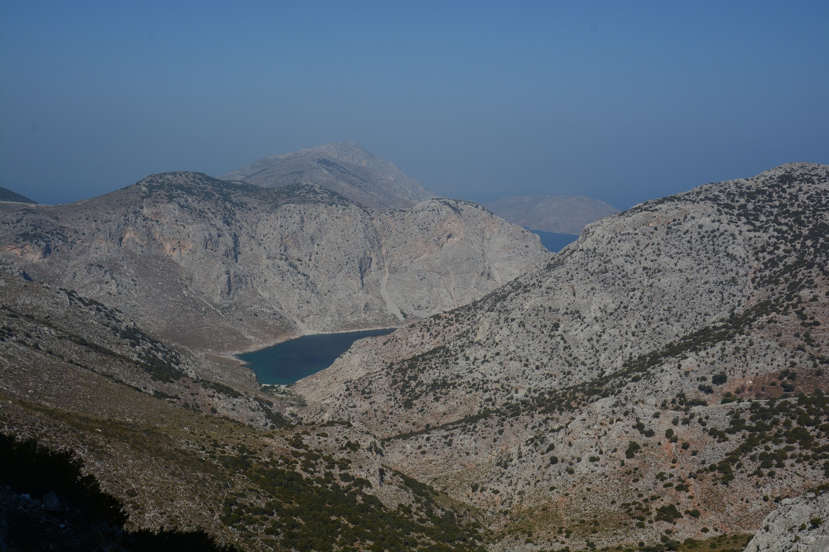 | Wir laufen den Fussweg weiter nach Norden, bis der Abfall zum Meer die Sicht auf die Potamos-Bucht frei gibt, auf deren Besuch wir ja leider verzichten mussten. Trotz des um diese Zeit eher trüben Wetters wanderte so manch sehnsüchtiger Blick zur Bucht hinunter. Auf der Rückfahrt machten wir Halt beim Leuchtturm. Alles sah hier sehr gepflegt aus, nur verschlossen, ? ungenutzt (bis auf eine lokale Radiostation, die angeblich von hier aus sendet. www.gavdosfm.gr |