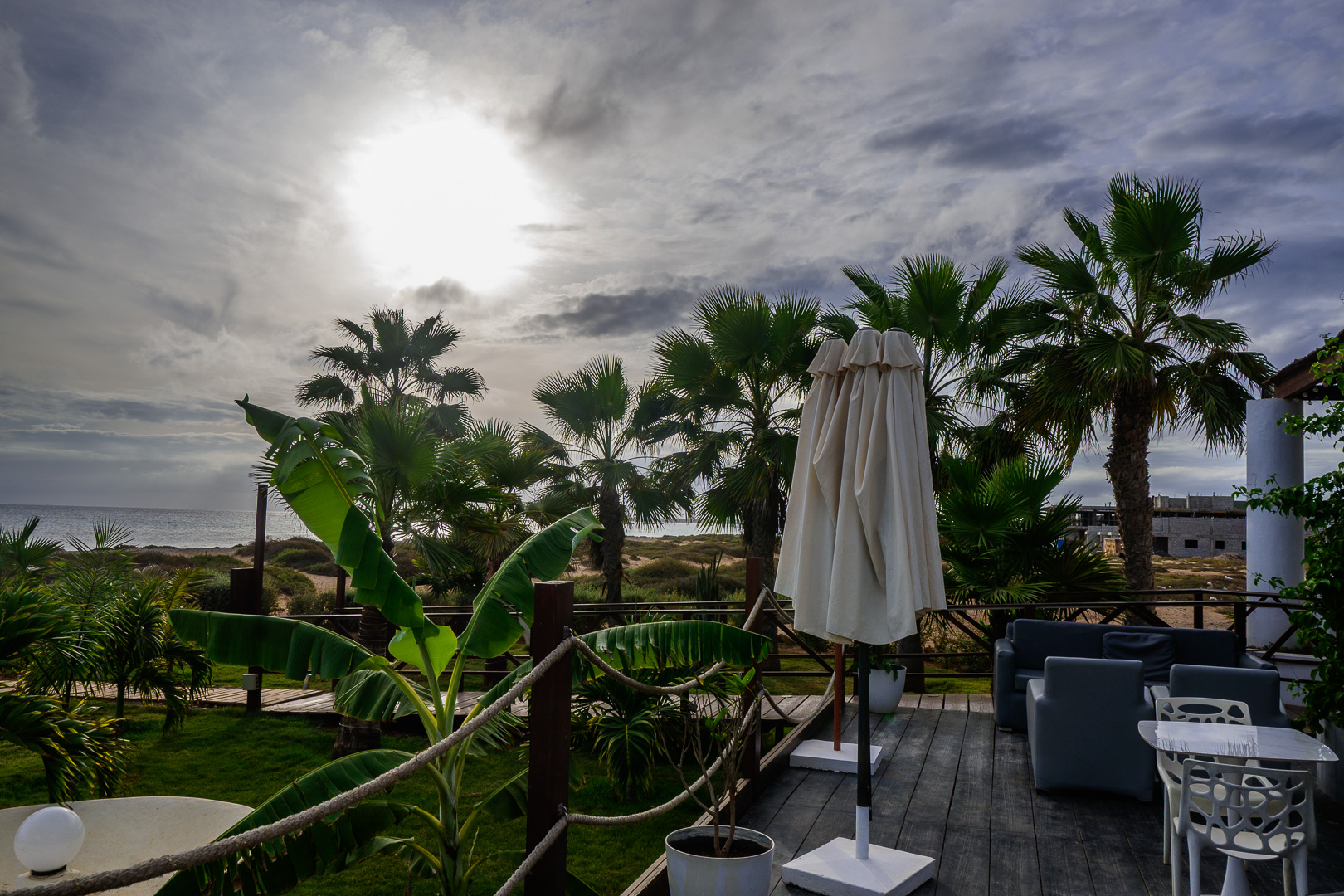 | Das Hotel lag an eine zauberhafte Bucht, aber bald begann es stark zu winden. Nach einem feinen Mittagessen auf der Terrasse gingen wir aber doch wieder hinunter, die Sonne schien ja immer noch und schlussendlich hatten wir für unsere Liegestühle 2.50 Euro bezahlt.!! Nach und nach tauchten unsere Langwanderer am Horizont auf und erzählten von ihren Erlebnisse. Marijke | |
