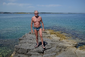 Einige nehmen ein Bad, das Wasser ist passabel warm (Marianne). Rückweg ab 16.00, am Schluss über einen anderen schöneren Weg mit Schotterstrasse, dann mit vielen Treppenstufen in das südliche Dorfteil. Ein Bier im Café Maestral am Quai mit den Palmen. Adrian, Vreni Schepperle und Susanne Neuenschwander zweigen noch vorher ab und gehen zum Sandstrand Przina nahe beim Dorf baden. |
