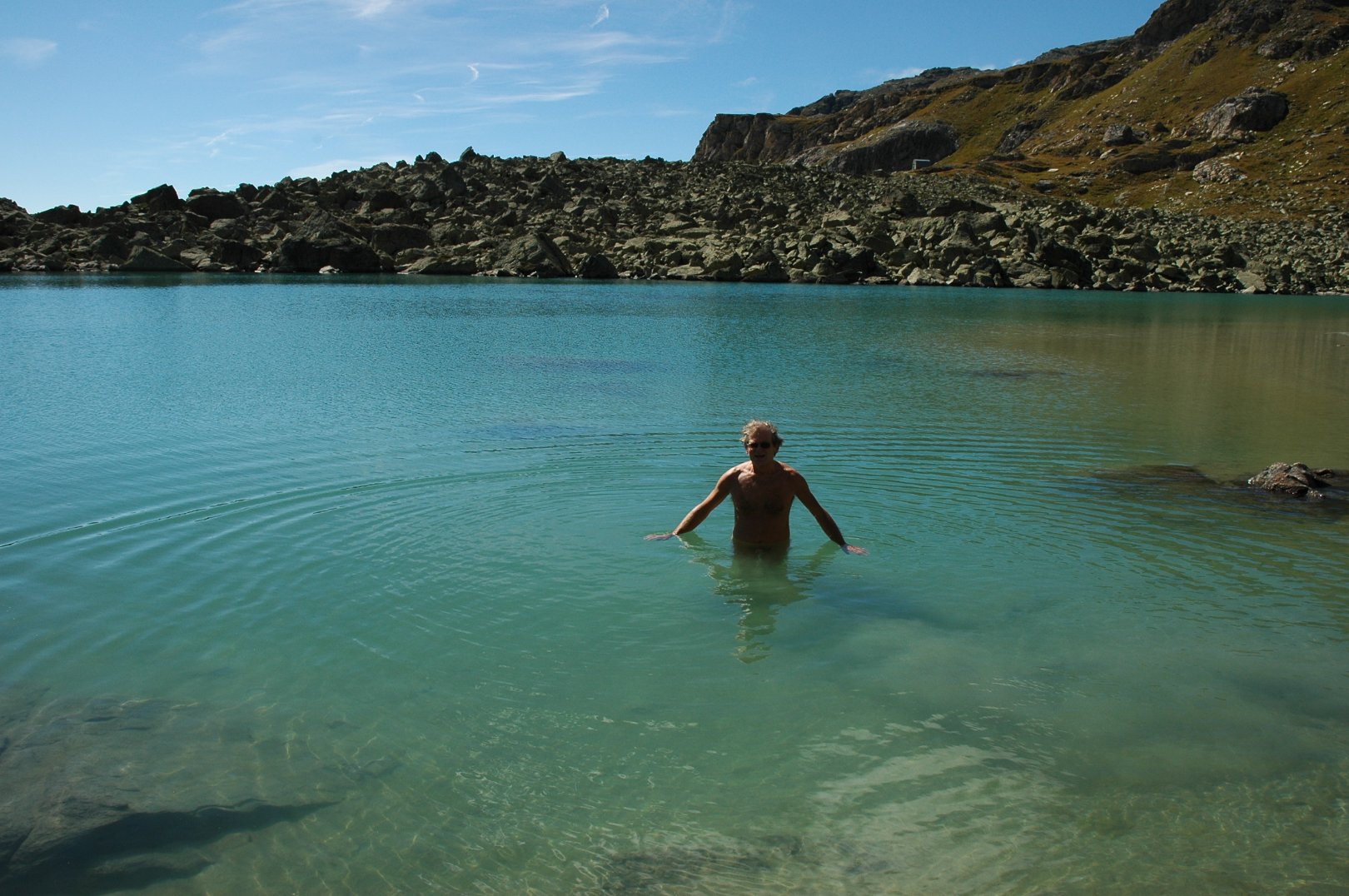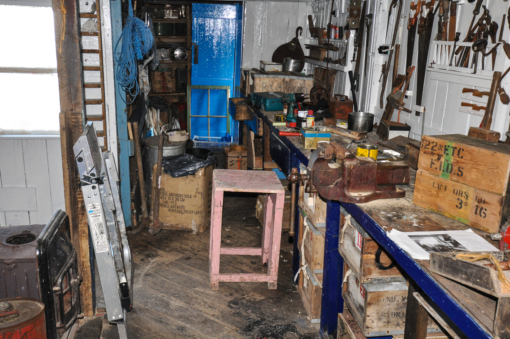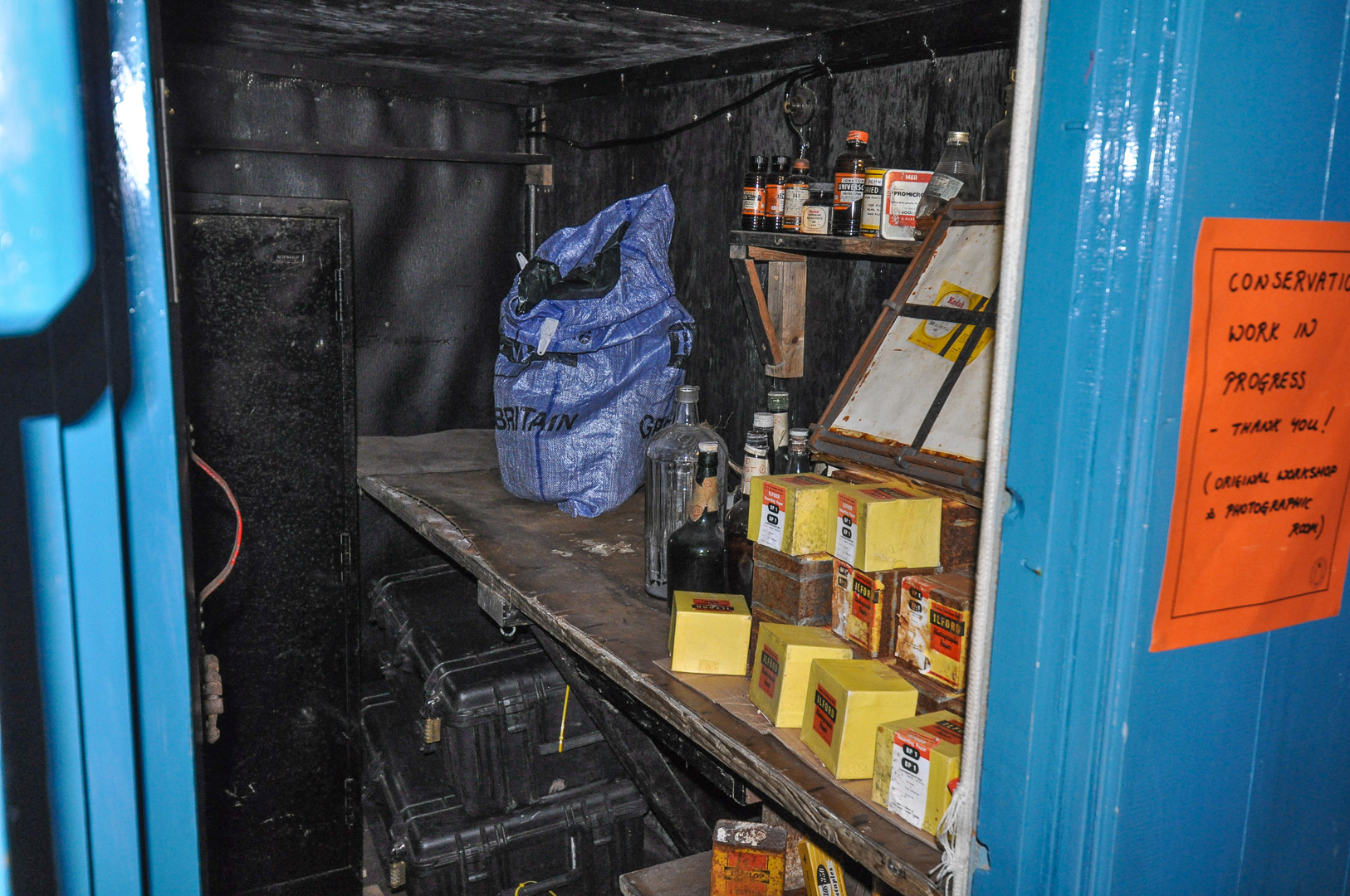 The morning landing was to be at Port Lockroy at the Southern end of Goudier Island near Doumer Island on the other side of the Neumayer Channel from the large Anvers Island. It is a historic site and part of the main hut has been preserved in its original state as a museum. On the opposite side of the natural harbor there was a colony of Gentoo penguins, which provided us great amusement. I show a few of the funny penguin pictures, but one really needs to see a whole sequence to understand what is going on. Here a perhaps a parent penguin was trying to help its chick over a lump of ice in a puddle, but they may both have been young ones. I suppose that I should have tried taking a short film. It was also interesting to see a complete whale skeleton lying on the beach. Only standing next to it does one get a true appreciation of its enormous size.