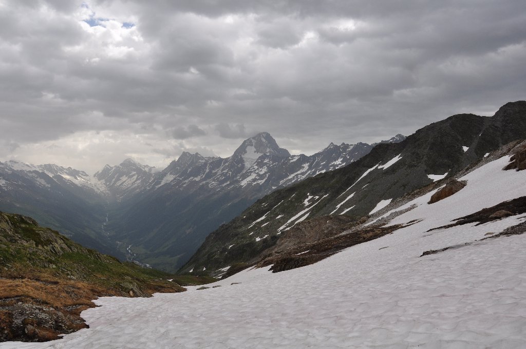 I had walked the first part of this route South of the Monte Rosa range with the sportclub group in 2002 returning to Switzerland with a crossing of the glaciated 3290m high Theodule Pass. Two years later together with my brother I recrossed the Theodule Pass and continued the route Westwards almost as far as Courmayeur. Our route was: