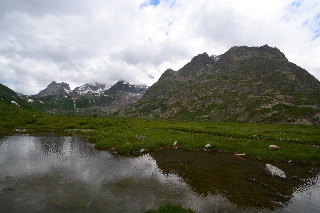 We had mostly good weather for six days but this changed dramatically soon after we left St.Oyen and we sought refuge in the Cantined’Aoste. This unattractive but historic building on the South of the Grand St.Bernhard pass was supposedly visited by Napoleon before his battle with the Italian army. It now offers some accommodation and refreshments and we were kindly given a sumptuous meal by the lady owner. After which in view of the snowfall higher up the pass we abandoned our plans to walk any further. The final day would have taken us via the Fenêtre de Ferret (2698m)back into the Val de Ferrett in Switzerland. There one joins part of the Tour du Mont Blanc which we completed much later in 2014.