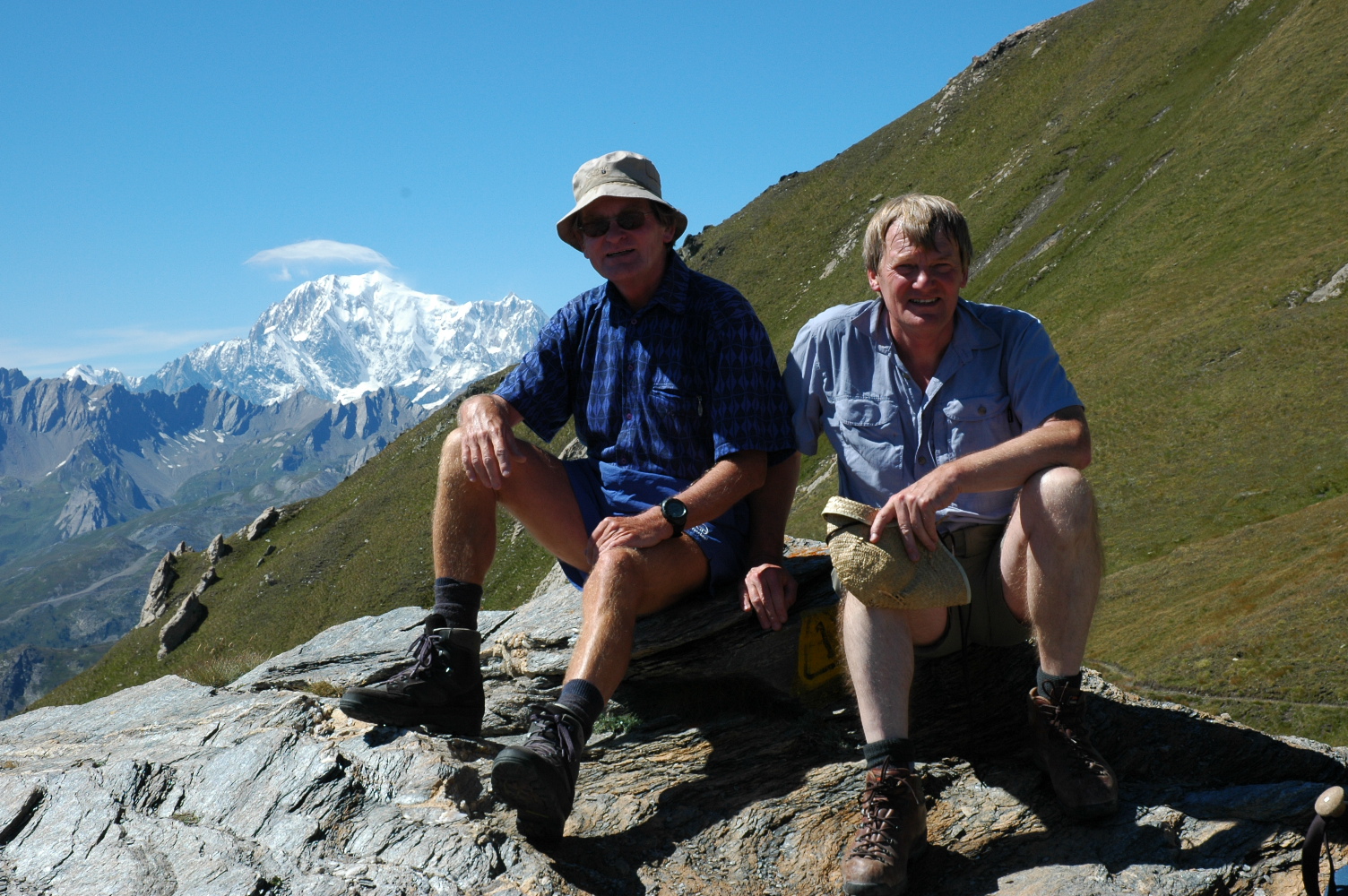 I had walked the first part of this route South of the Monte Rosa range with the sportclub group in 2002 returning to Switzerland with a crossing of the glaciated 3290m high Theodule Pass. Two years later together with my brother I recrossed the Theodule Pass and continued the route Westwards almost as far as Courmayeur. Our route was: