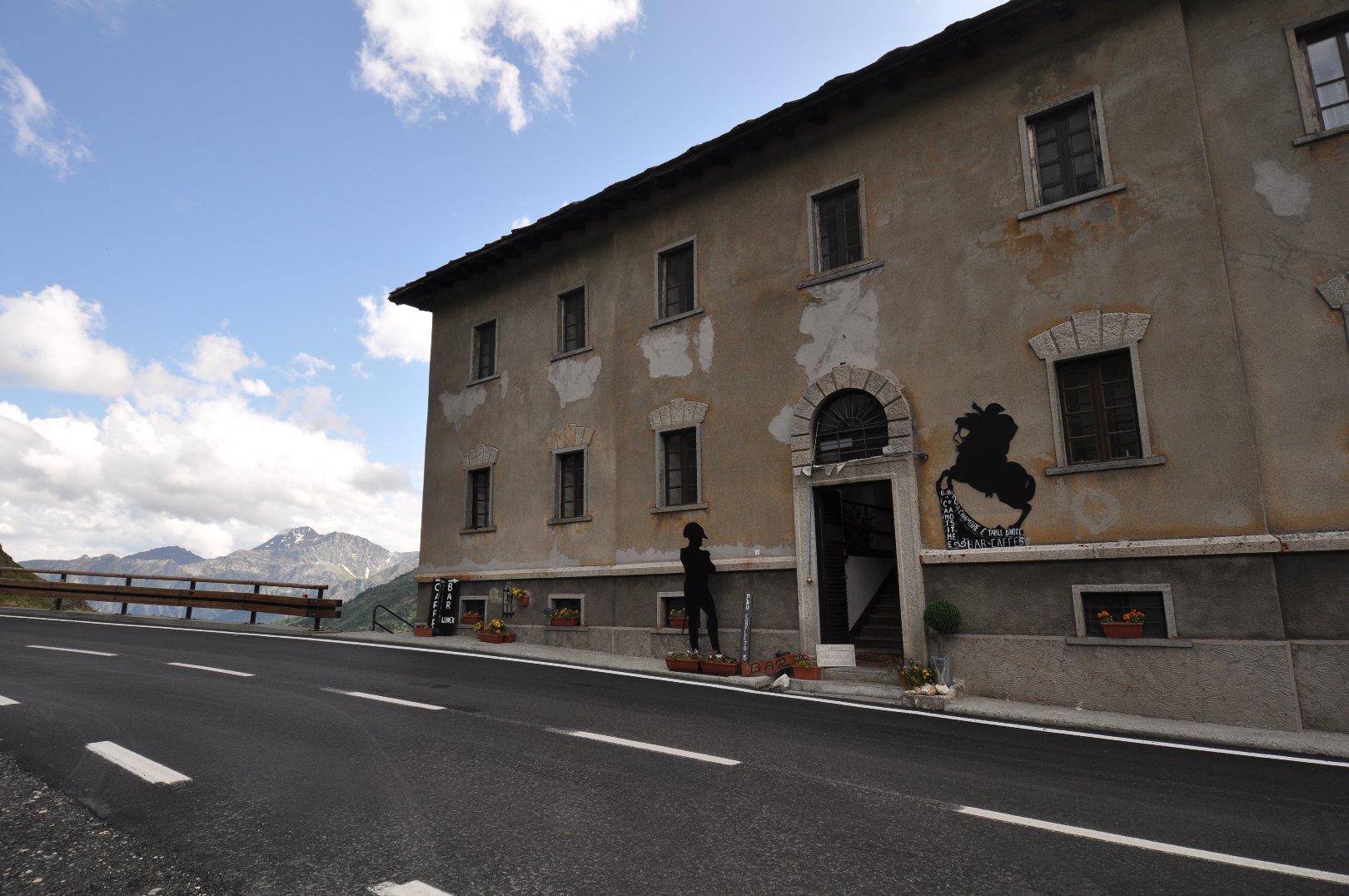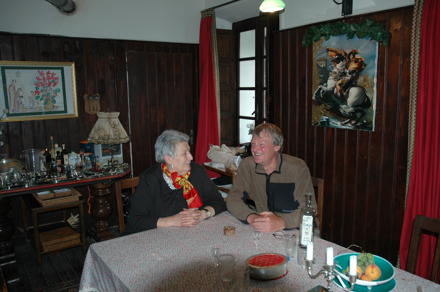 We had mostly good weather for six days but this changed dramatically soon after we left St.Oyen and we sought refuge in the Cantined’Aoste. This unattractive but historic building on the South of the Grand St.Bernhard pass was supposedly visited by Napoleon before his battle with the Italian army. It now offers some accommodation and refreshments and we were kindly given a sumptuous meal by the lady owner. After which in view of the snowfall higher up the pass we abandoned our plans to walk any further. The final day would have taken us via the Fenêtre de Ferret (2698m)back into the Val de Ferrett in Switzerland. There one joins part of the Tour du Mont Blanc which we completed much later in 2014.