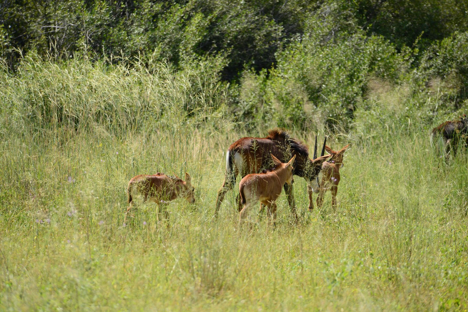 Sable antelope were popular with hunters because of their beautiful appearance and long horns and are now quite rare. They prefer areas of long grass close to water and we were able to locate a small heard with several young which are much paler than the adults.
