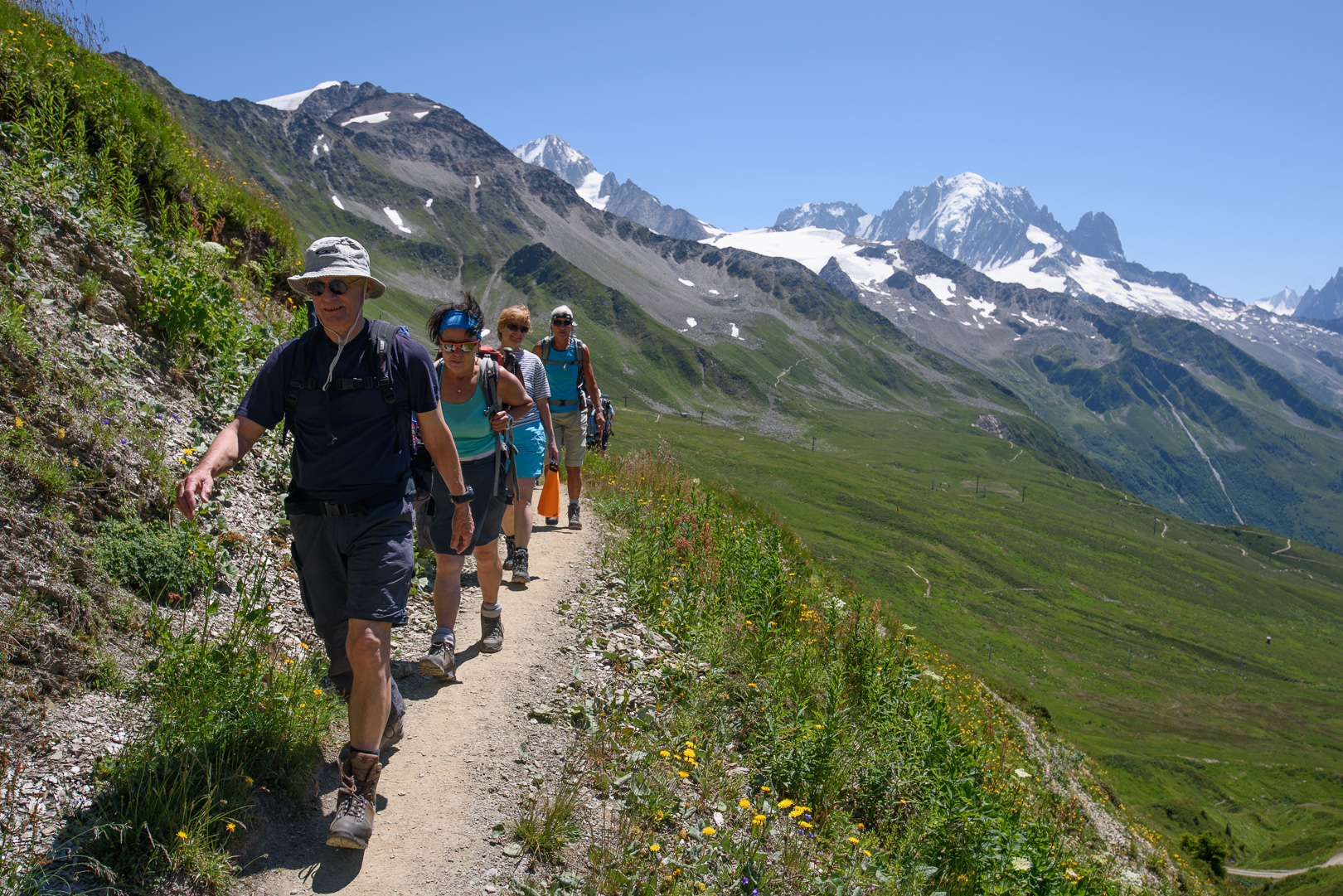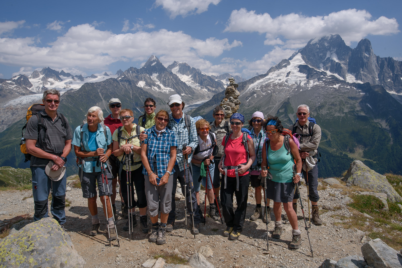 Der Tour du Mont-Blanc ist einer der beliebtesten Fernwanderwege der Alpen. Er verläuft um die Mont-Blanc-Gruppe und führt durch drei Länder. Wir starten auf den Pass La Balme schon mit fantastischen Aussichten auf den imposanten Mont Blanc und L’Aiguille Verte. Am zweitenTag ist der Balkon Aiguilles Rouges sicher einer der schönsten Aussichts-punkte der Bergwelt. Wenn de Zeit reicht machen wir noch den wunderbarer Aufstieg zum Lac Blanc. Auch am dritten Tag wandern mit traumhaften Aussichten auf die umliegenden Berge, immer den Mont Blanc im Blickfeld.